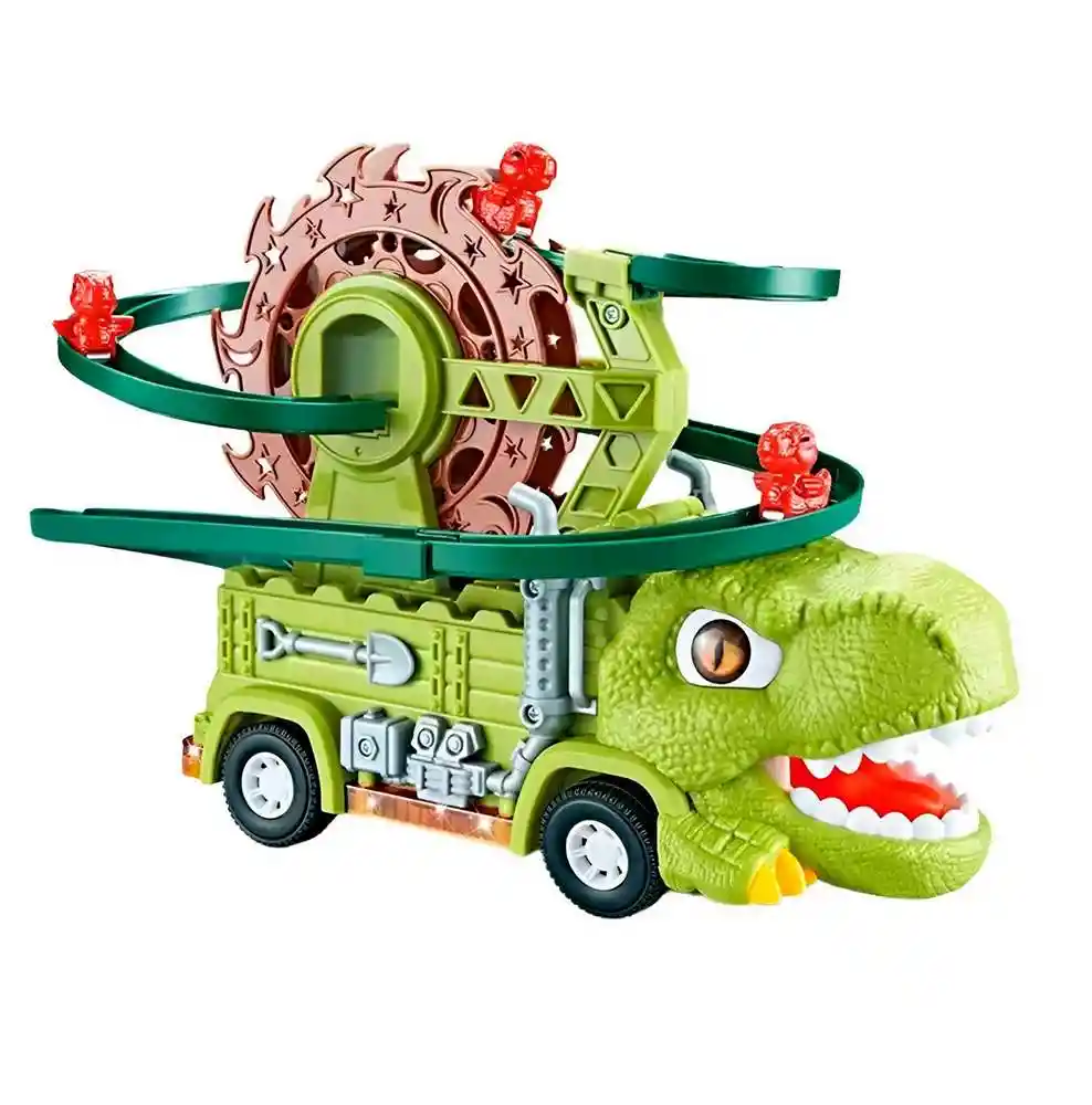 El camión dinosaurio con pista giratoria es una fusión épica entre vehículo y criatura prehistórica, perfecto para los pequeños aventureros. Su diseño vibrante incluye luces, movimiento y una pista en espiral por donde corren mini dinosaurios, ofreciendo un espectáculo visual lleno de acción que estimula la imaginación y el juego creativo. Ficha Técnica: Dimensiones : 22 cm x 18 cm x 9 cm Funcionamiento: 3 Baterias ( Incluidas ) Material: Plástico ABS Edad Apta : + 3 años Referencia: JM-1200 YJ388-74 Certificado de conformidad: E5-0359-2021 Términos de Garantía: Para defectos de fábrica o retractos: Por favor revise el producto apenas lo reciba y antes de usarlo. No aplican ley de retracto o defectos de fábrica luego de usar el producto. Se manejan máximo 5 días para reportar defectos de fábrica (por ejemplo, producto funciona mal, piezas faltantes, rotas, etc). Para hacer efectiva la devolución el producto debe devolverse con el empaque original, el cual debe estar en buen estado, incluir todos los documentos y las partes completas y sin daños.