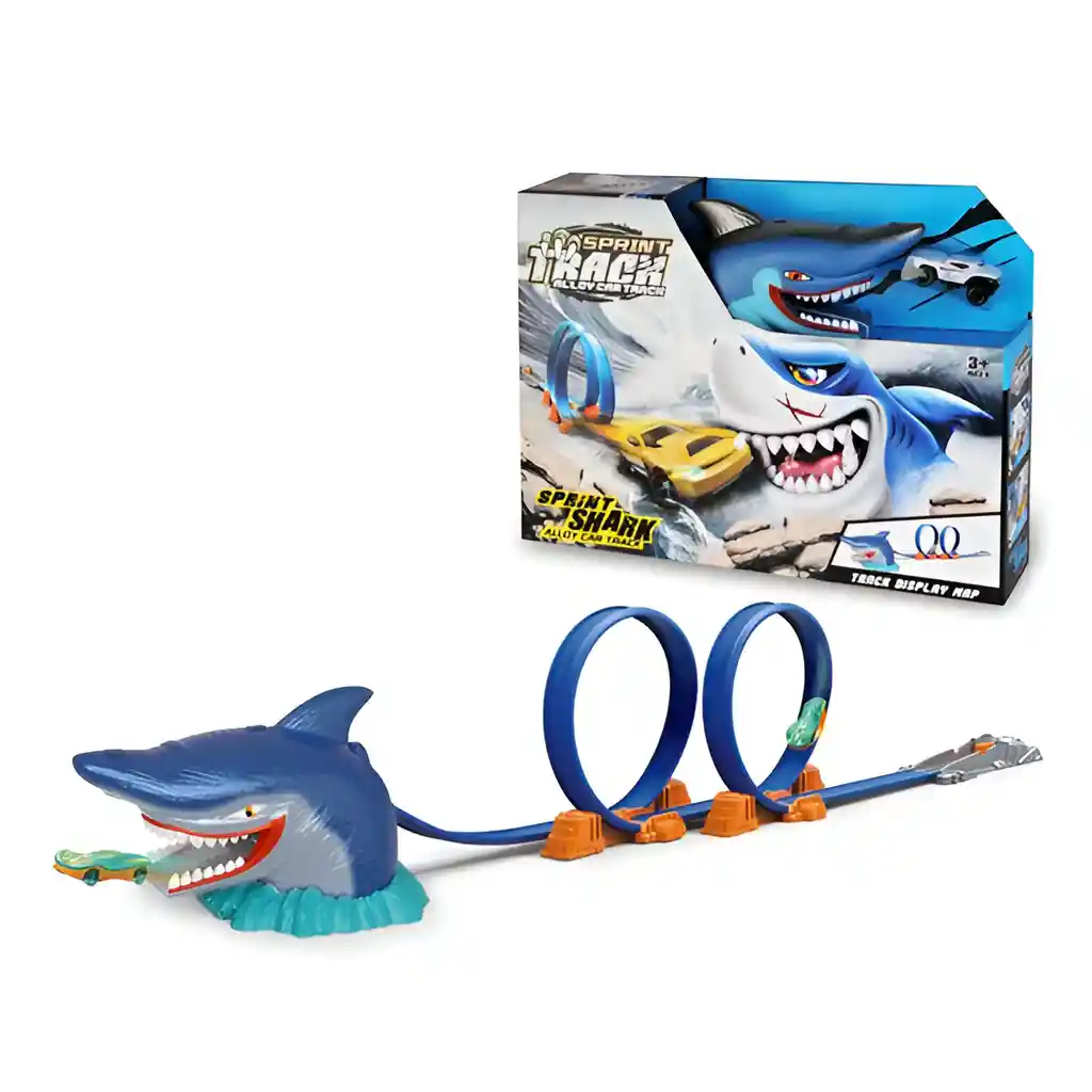 ¡Prepárate para la máxima adrenalina y desafía las fauces del peligro con la Pista de Carreras "Sprint Shark"! Lanza tu vehículo a toda velocidad por la rampa, siente la emoción al pasar por el espectacular doble looping que desafía la gravedad y acelera a fondo para intentar escapar de las temibles mandíbulas del tiburón hambriento que espera al final del recorrido. ¿Serás lo suficientemente rápido para sobrevivir o te convertirás en su próxima presa? Este set lleno de acción incluye un vehículo listo para la carrera y garantiza horas de juego trepidante, competencia y desafíos de alta velocidad. ¡Acepta el reto y demuestra quién es el rey de la pista! Ficha Técnica: Material de la pista: Plástico ABS Dimensiones: 40 cm x 30 cm x 9 cm Material del vehículo : Plástico / Metal Dimensiones del vehículo : 7 cm x 2.5 cm x 2.5 cm Edad: + 3 años Certificado de conformidad: SL-CS-210044 Referencia: C4063 ** _Para defectos de fábrica o retractos: \_Por favor revise el producto apenas lo reciba y antes de usarlo. No aplican ley de retracto o defectos de fábrica luego de usar el producto. Se manejan máximo 5 días para reportar defectos de fábrica (por ejemplo, producto funciona mal, piezas faltantes, rotas, etc). Para hacer efectiva la devolución el producto debe devolverse con el empaque original, el cual debe estar en buen estado, incluir todos los documentos y las partes completas y sin daños.