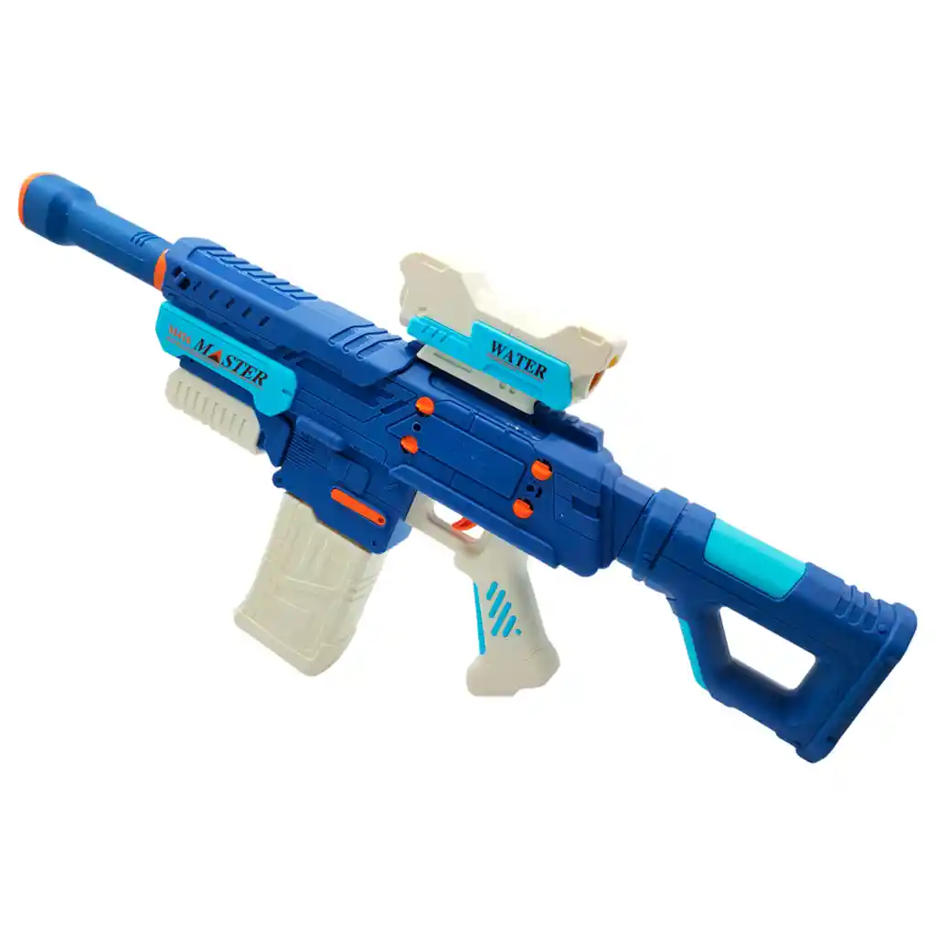 Pistola de Agua Eléctrica "Water Master" – ¡Diversión de Alto Impacto! ¡Convierte cada día de sol en una batalla épica de agua! Este lanzador de agua con diseño táctico combina potencia, estilo y tecnología para ofrecer una experiencia de juego inolvidable. Características destacadas: Diseño tipo rifle táctico con mira, culata y cañón desmontables para una experiencia realista y personalizable. Doble modo de disparo: eléctrico para ráfagas automáticas y manual para seguir jugando cuando se agota la batería. Alcance impresionante de hasta 10 metros (25–32 pies), ideal para juegos al aire libre. Tanque de agua de gran capacidad (500 ml) para menos recargas y más acción. Sistema de bombeo presurizado que dispara potentes chorros de agua. Luces y sonidos integrados que elevan la emoción del juego. Fácil de armar y usar: Montaje intuitivo en 6 pasos con piezas seguras y resistentes. Depósito extraíble para recarga rápida. Compartimento de batería con cierre seguro (funciona también sin batería en modo manual). Ideal para: Niños mayores de 6 años. Juegos en el jardín, la playa o la piscina. Regalos originales y emocionantes. Incluye: Pistola de agua eléctrica desmontable. Mira, cañón, culata y tanque de agua. Manual de armado paso a paso. Accesorios adicionales según modelo. ¡Prepárate para dominar el campo de batalla acuático con estilo y potencia! El "Water Master" no es solo un juguete, es una experiencia.