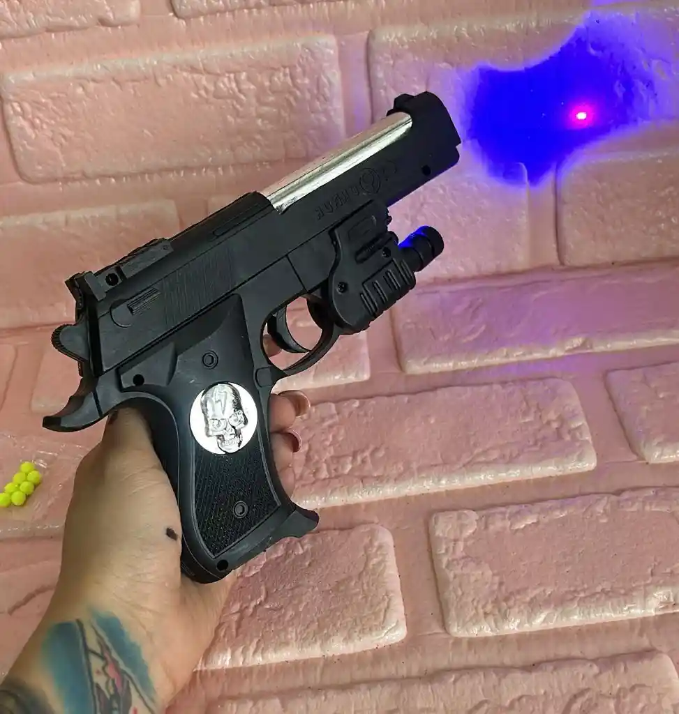 PISTOLA BALINES CON LASER PLATEADA COD.2306