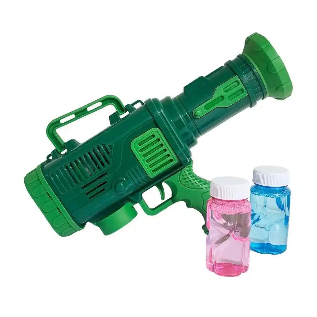 La pistola de burbujas es un juguete divertido y seguro diseñado para llenar de magia y alegría los momentos de juego, con un diseño de estilo futurista que incluye un mecanismo automático para generar múltiples burbujas de forma continua; cuenta con un mango ergonómico que facilita su uso por parte de los niños y viene acompañada de botellas con solución especial de burbujas para que puedan comenzar a disfrutarla de inmediato, convirtiéndose en la opción ideal para actividades al aire libre, fiestas y juegos en familia. Ficha Técnica: Dimensiones: 26 cm x 14 cm x 5 cm Funcionamiento: 4 Baterias AA ( Incluidas ) Material: Plástico ABS no toxico Edad recomendada + 3 Años Referencia: 9835-3 Certificado de conformidad: CS-LCO-13233-2021S2/432 ** _Para defectos de fábrica o retractos: \_Por favor revise el producto apenas lo reciba y antes de usarlo. No aplican ley de retracto o defectos de fábrica luego de usar el producto. Se manejan máximo 5 días para reportar defectos de fábrica (por ejemplo, producto funciona mal, piezas faltantes, rotas, etc). Para hacer efectiva la devolución el producto debe devolverse con el empaque original, el cual debe estar en buen estado, incluir todos los documentos y las partes completas y sin daños.