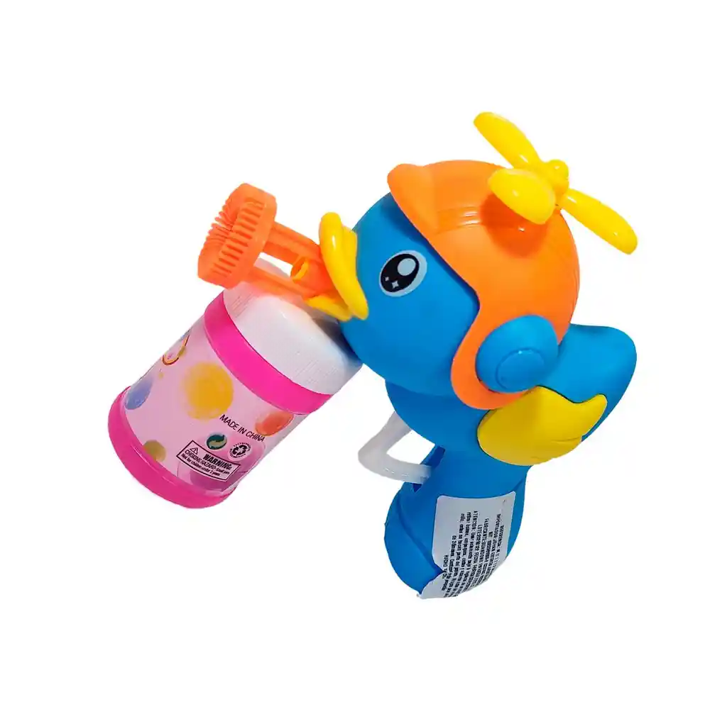 ¡Prepárate para volar hacia un mundo de diversión con nuestra adorable pistola de burbujas de patito aviador! Este encantador juguete no solo captura la imaginación con su alegre diseño amarillo y su simpático casco de piloto, sino que también ofrece una doble dosis de asombro. Con cada apretón del gatillo, no solo lanzarás un torrente de burbujas mágicas desde su pico, sino que también verás cómo la hélice en su cabeza gira creando un torbellino de alegría. Perfecta para tardes de juego en el parque, fiestas de cumpleaños o simplemente para añadir un toque de magia al día, esta pistola de burbujas es increíblemente fácil de usar y garantiza horas de risas y entretenimiento. ¡Es el regalo ideal para que los pequeños despeguen hacia una aventura llena de color y fantasía! Ficha Técnica: Material : Plástico ABS Dimensiones : 16 cm x 14 cm x 8 cm Material : Plástico ABS Edad recomendada: + 3 años Referencia: 626 Certificado de conformidad: CS-LCO-13233-2021S2/432 Términos de garantía: Para defectos de fábrica o retractos: Por favor revise el producto apenas lo reciba y antes de usarlo. No aplican ley de retracto o defectos de fábrica luego de usar el producto. Se manejan máximo 5 días para reportar defectos de fábrica (por ejemplo, producto funciona mal, piezas faltantes, rotas, etc). Para hacer efectiva la devolución el producto debe devolverse con el empaque original, el cual debe estar en buen estado, incluir todos los documentos y las partes completas y sin daños.