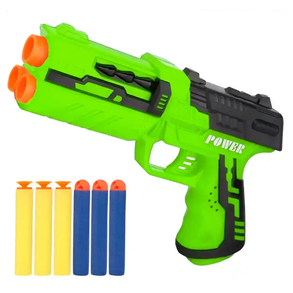 ¡Prepárate para la acción y duplica la diversión con nuestra potente Pistola Lanzadardos de Doble Cañón! Con un diseño futurista y ergonómico, esta pistola está lista para dominar cualquier batalla de espuma. Carga tus dardos, apunta con precisión y dispara uno tras otro para sorprender a tus oponentes. Este set viene listo para la acción con una selección de dardos de espuma, incluyendo dardos con punta de ventosa para adherirse a superficies lisas y dardos estándar para alcanzar largas distancias. ¡Es la herramienta perfecta para desarrollar la puntería, fomentar el juego activo y garantizar horas de emocionantes misiones y competencia amistosa! Ficha Técnica: Material: Plástico ABS Dimensiones Pistola : 19 cm x 13 cm x 4 cm Apto para niños + 12 Años Dimensiones de los dardos: 7 cm x 1 cm Referencia: 1006597 Certificado de conformidad: CS-LCO-13233-2021S2/432 ** _Para defectos de fábrica o retractos: \_Por favor revise el producto apenas lo reciba y antes de usarlo. No aplican ley de retracto o defectos de fábrica luego de usar el producto. Se manejan máximo 5 días para reportar defectos de fábrica (por ejemplo, producto funciona mal, piezas faltantes, rotas, etc). Para hacer efectiva la devolución el producto debe devolverse con el empaque original, el cual debe estar en buen estado, incluir todos los documentos y las partes completas y sin daños.