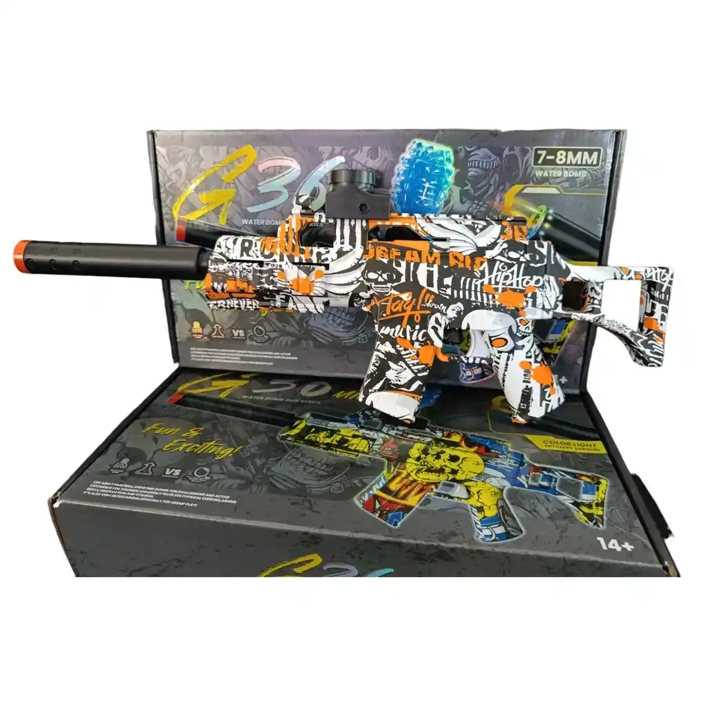 Pistola eléctrica lanzadora de bolas de hidrogel biodegradables, respetuosas con el medio ambiente para actividades al aire libre y juego de disparos en equipo para evitar lesiones te proporcionará una experiencia real sin preocupaciones. Este juguete es impulsado por un recurso y utiliza bolas de gel como munición: Debes remover las bolas de hidrogel en agua previamente al juego. Procura equiparte con las lentes de seguridad que incluye el paquete. Cuenta con batería recargable de alta durabilidad que garantiza hasta 3 horas de diversión continua. Medidas de pistola armada: 52cm ancho x 27cm de alto Material Plástico 1 Gafas Batería de 500mAh. 7.4V 1 Cable USB 1.000 bolitas de hidrogel