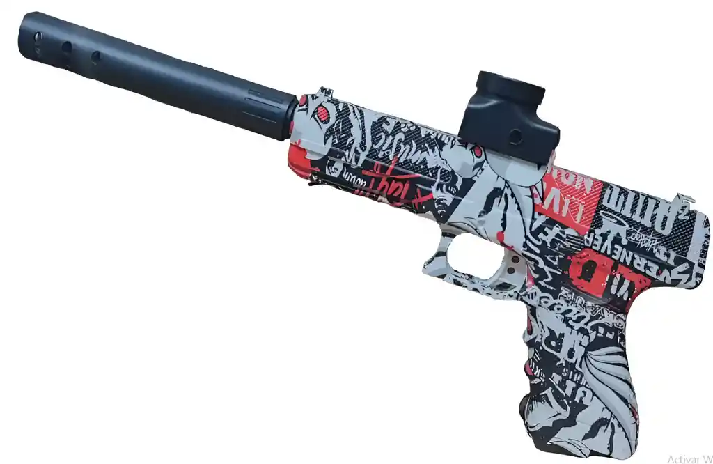 Pistola de hidrogel St607b Pistola lanzadora eléctrica de bolas de hidrogel pensada como juguete para batalla (outdoor/indoor). Es un bláster recargable, generalmente fabricado en plástico ABS, que dispara bolas de hidrogel (orbeez) tras remojarlas. Suele venderse con accesorios y munición incluida en distintas presentaciones.