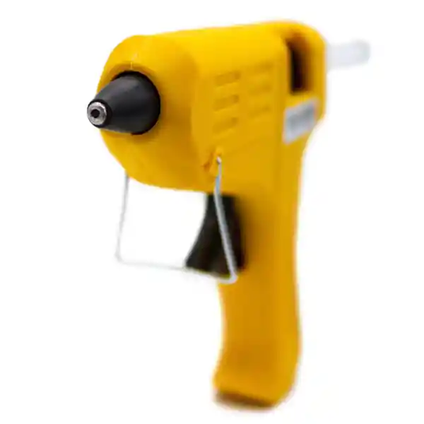 Pistola silicona pequeña amarilla, ideal para pegar plásticos, tela, metal, fomi, juguetes, madera papel, etc. POTENCIA 10W Peso: 0,127 kg Dimensiones: 13 × 19 × 4 cm Marca: Mercury