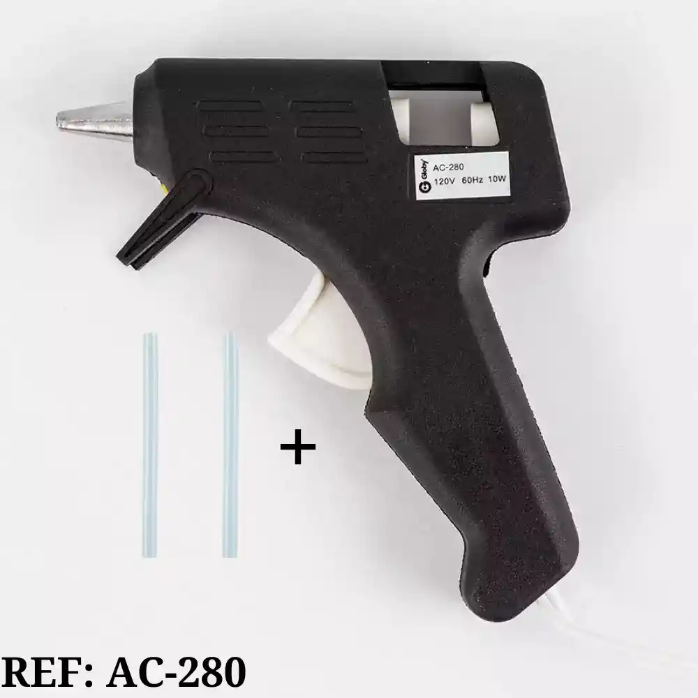 Herramienta de uso manual diseñada para aplicar adhesivo de silicona caliente de manera rápida y precisa, ideal para realizar trabajos de reparación, manualidades, bricolaje y proyectos de ensamblaje. Este dispositivo se calienta eléctricamente, lo que permite derretir barras de silicona, transformándolas en un adhesivo que se puede aplicar sobre diversas superficies, proporcionando una sujeción fuerte y duradera. Características principales: -Potencia de 10W: La pistola cuenta con una potencia de 10W, suficiente para calentar rápidamente las barras de silicona y permitir una aplicación eficiente. -Repuesto de Silicona incluido: El producto viene con 2 repuestos de barras de silicona, lo que asegura que el usuario pueda comenzar a trabajar inmediatamente. - Medida Repuesto De Silicona: -Largo: 10 Cm (APROX) -Ancho: 8 Mm (APROX)