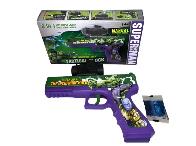 ¡Bienvenido a Tecno Genuinos – Tecnología del Futuro al Alcance de Tu Mano! Somos expertos en artículos de tecnología, belleza y hogar, seleccionados con altos estándares de calidad y trayectoria comprobada. Compra con confianza y recibe productos garantizados y 100% originales. ¡Entregas inmediatas en Bogotá y envíos a todo el país! Descripción: ¡La pistola de juguete perfecta para los pequeños aventureros! Esta increíble pistola de doble propósito no solo lanza dardos de espuma, sino que también puede disparar esferas de hidrogel para mayor diversión. Con un elegante diseño de superhéroes, cuenta con un alcance de 5-10 metros, garantizando horas de juego seguro y emocionante. Características: Diseño de Superhéroes: Ideal para niños que adoran las aventuras épicas. Doble Función: Dispara dardos de espuma o esferas de hidrogel (requiere remojar las esferas en 180 ml de agua por 3 horas). Seguridad Garantizada: 100% seguro para los pequeños, con una velocidad de disparo no peligrosa. Incluye: 10 dardos de espuma y un sobre de esferas de hidrogel. Especificaciones: Material: Plástico ABS resistente. Edad recomendada: +12 años. Dimensiones: 20 cm de largo, 14 cm de alto, 3 cm de ancho. Tamaño de los dardos: 3 cm x 1 cm. Antes de Comprar, Ten en Cuenta: • Lee detenidamente la descripción completa del producto. • Verifica los términos y condiciones de garantía. • Asegúrate de que sea el producto adecuado para ti y así evitar devoluciones.