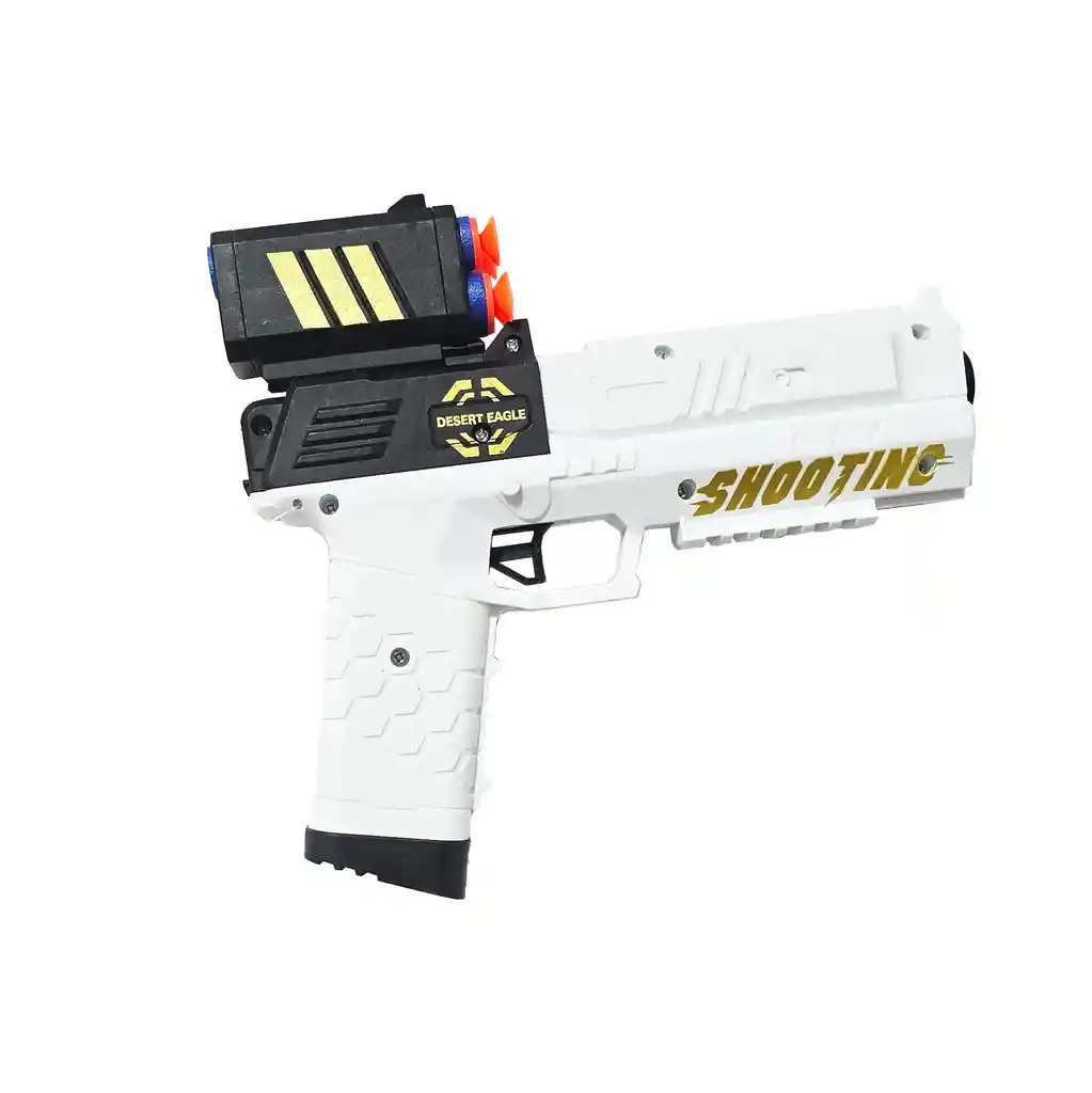 Diviértete al máximo con esta pistola lanzadora de dardos de espuma, diseñada para brindar horas de juego seguro y emocionante; su estructura ligera y resistente facilita el uso en competencias y juegos de puntería, mientras que el cargador removible te permite recargar rápidamente y mantener la acción sin pausas, siendo ideal para niñas y niños mayores de 6 años que disfrutan de la aventura y la diversión activa en cualquier momento. ////El set incluye una pistola - 4 Dardos//// Ficha Técnica: Material: Plástico ABS Dimensiones Pistola : 17 cm x 19 cm x 3 cm Apto para niños + 6 Años Dimensiones de los dardos: 7 cm x 1 cm Referencia: SR868-26 Certificado de conformidad: CS-LCO-13233-2021S2/432 ** _Para defectos de fábrica o retractos: \_Por favor revise el producto apenas lo reciba y antes de usarlo. No aplican ley de retracto o defectos de fábrica luego de usar el producto. Se manejan máximo 5 días para reportar defectos de fábrica (por ejemplo, producto funciona mal, piezas faltantes, rotas, etc). Para hacer efectiva la devolución el producto debe devolverse con el empaque original, el cual debe estar en buen estado, incluir todos los documentos y las partes completas y sin daños.