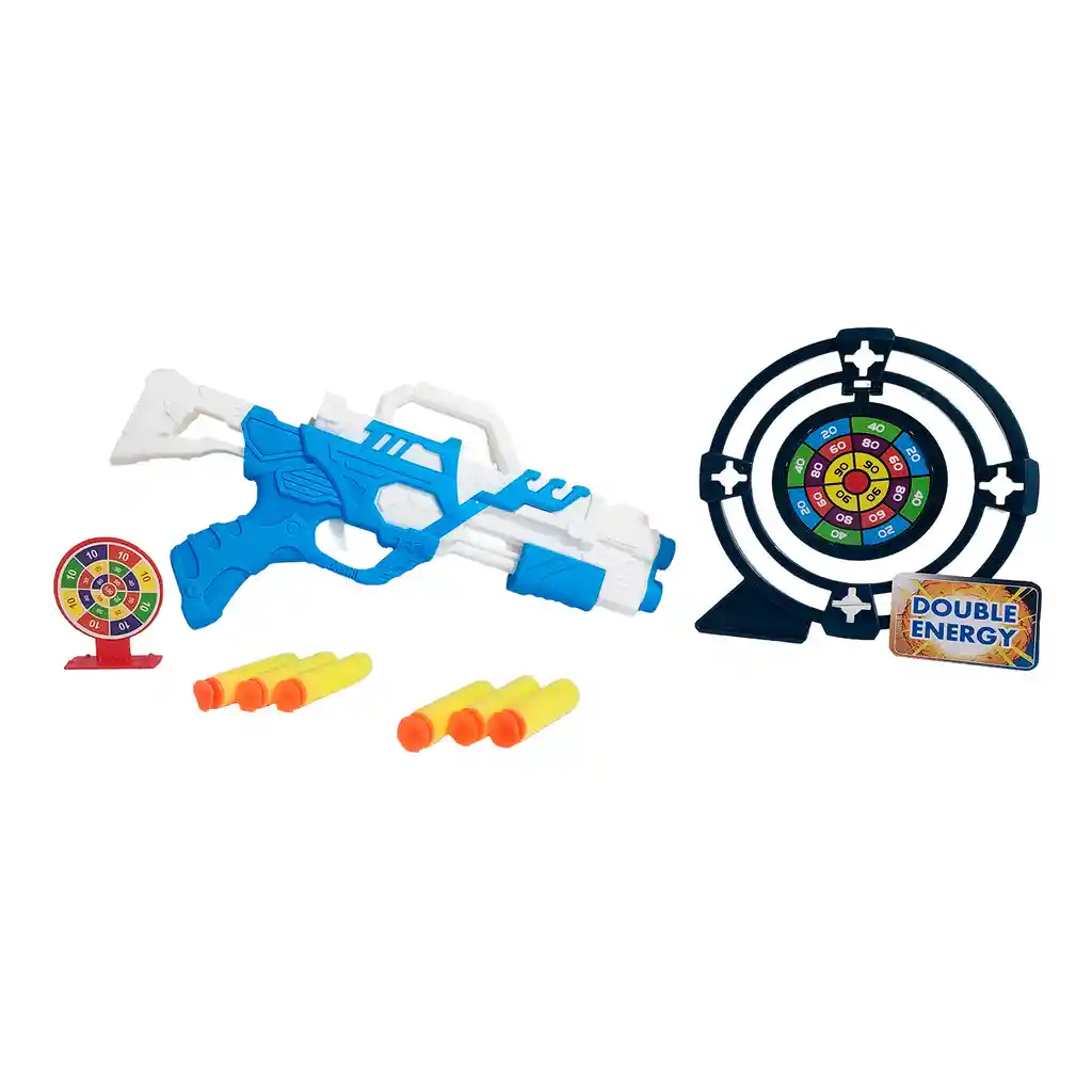 Diversión asegurada con la pistola Energy Gun Dual Cannon Ejection, un set ideal para niñas y niños desde 3 años que incluye 6 dardos de espuma y un blanco de tiro para practicar puntería de forma segura y entretenida; su diseño ergonómico en colores vibrantes permite un fácil manejo, mientras su doble cañón de disparo ofrece más emoción en cada partida, convirtiéndola en el regalo perfecto para vivir horas de acción y competencia saludable en casa o al aire libre. Ficha Técnica: Material: Plástico ABS Dimensiones Pistola : 30 cm x 17 cm x 3 cm Dimensiones del dardo: 5 cm x 1 cm Apto para niños + 3 Años Referencia: 6207-14 Certificado de conformidad: CS-LCO-13233-2021S2/432 ** _Para defectos de fábrica o retractos: \_Por favor revise el producto apenas lo reciba y antes de usarlo. No aplican ley de retracto o defectos de fábrica luego de usar el producto. Se manejan máximo 5 días para reportar defectos de fábrica (por ejemplo, producto funciona mal, piezas faltantes, rotas, etc). Para hacer efectiva la devolución el producto debe devolverse con el empaque original, el cual debe estar en buen estado, incluir todos los documentos y las partes completas y sin daños.