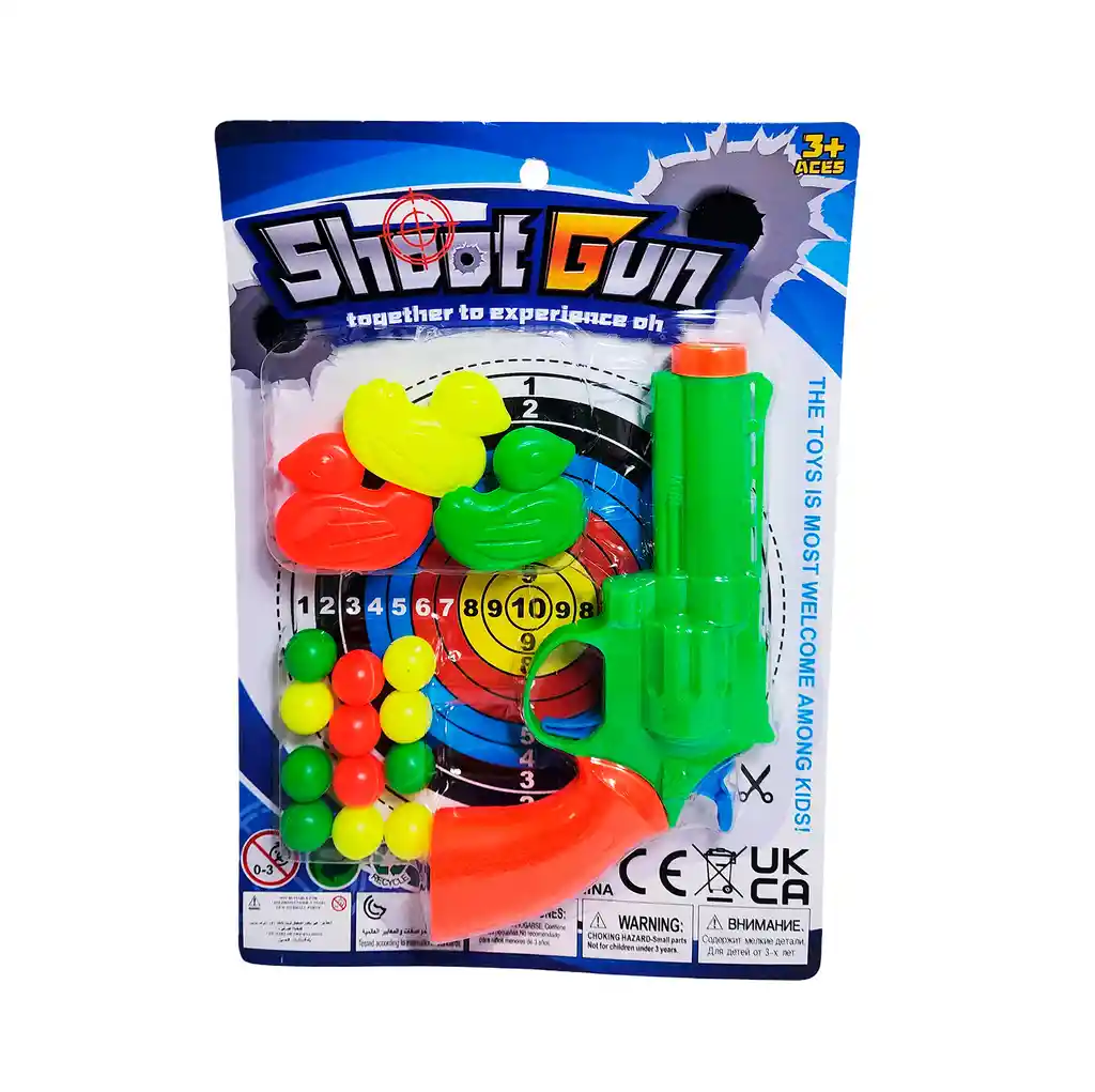 ¡Prepara, apunta y dispara hacia la diversión con nuestro emocionante Set de Tiro al Blanco! Este completo juego de puntería es perfecto para que los pequeños francotiradores pongan a prueba su precisión y se conviertan en maestros del disparo. El set incluye una pistola de colores vibrantes, muy fácil de usar, junto con un tablero de tiro al blanco numerado y divertidos objetivos en forma de pájaro para variar el desafío, además de un montón de bolitas de plástico de colores como munición. Es la manera ideal de desarrollar la coordinación mano-ojo y la concentración mientras compites contra tus amigos para ver quién consigue la puntuación más alta. ¡Acepta el reto, afina tu puntería y demuestra que eres el mejor tirador!. Ficha Técnica: Material: Plástico ABS Dimensión empaque: 24 cm x 17 cm Edad recomendada + 3 Años Referencia: AK330-10 Certificado de conformidad: CS-LCO-13233-2021S2/432 ** _Para defectos de fábrica o retractos: \_Por favor revise el producto apenas lo reciba y antes de usarlo. No aplican ley de retracto o defectos de fábrica luego de usar el producto. Se manejan máximo 5 días para reportar defectos de fábrica (por ejemplo, producto funciona mal, piezas faltantes, rotas, etc). Para hacer efectiva la devolución el producto debe devolverse con el empaque original, el cual debe estar en buen estado, incluir todos los documentos y las partes completas y sin daños.