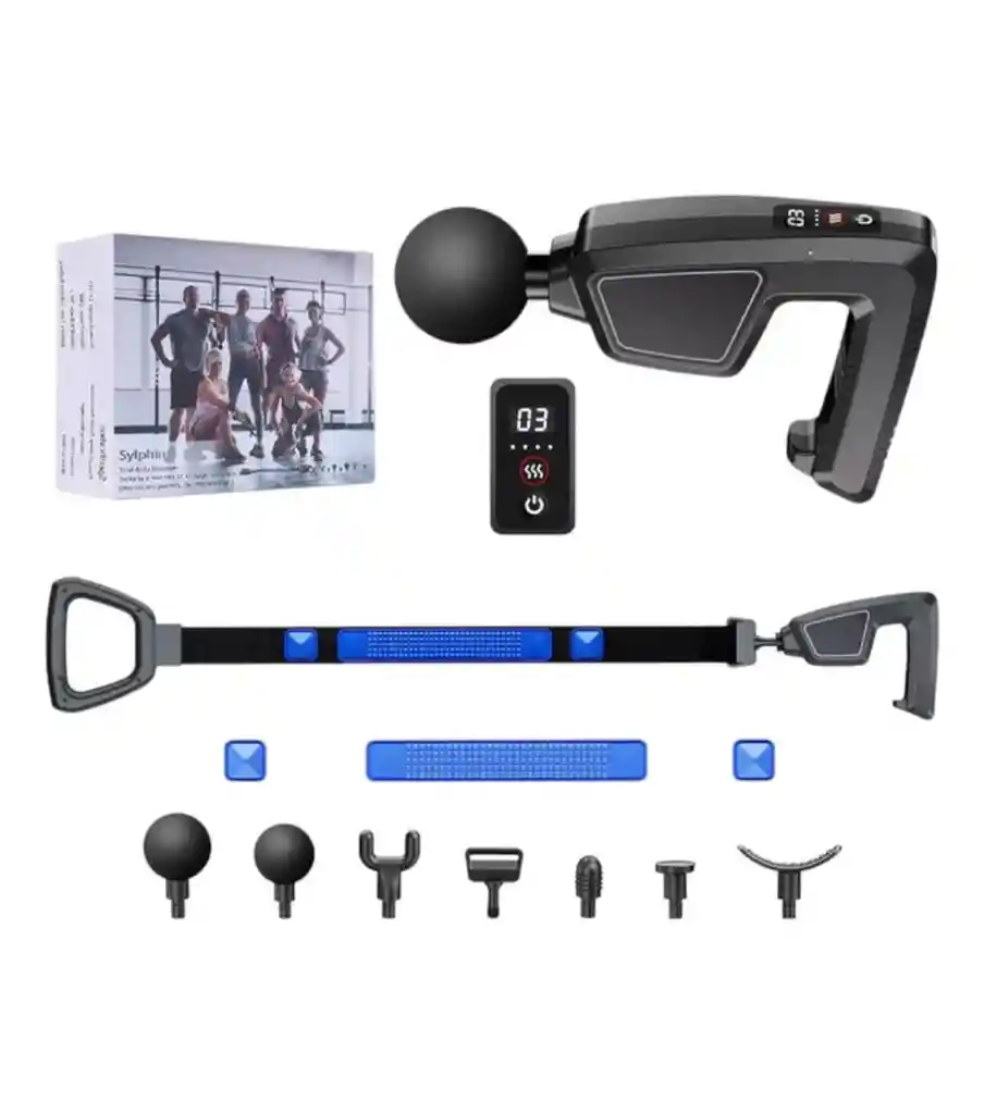Nombre: Pistola de masaje Embalaje: 1 pieza Color: Negro blanco Voltaje: 5V 1A Potencia: 24W Capacidad de la batería: 2x1500mAh Tiempo de uso: 3h Amplitud: 9mm Características: 1. Cinturón elástico de masaje, envolvente, masaje de cuerpo completo. 2. Función de temperatura, sistema de control de temperatura constante NTC incorporado, acumulación rápida de calor, 6 niveles de regulación de temperatura. 3. Cabezal de masaje 3,6, intercambiable según diferentes grupos musculares. 4. Motor potente y de alta potencia con estructura de transmisión de doble rodamiento, aporta gran potencia y es más silencioso.