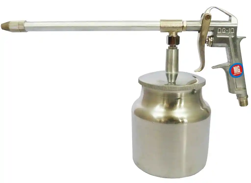 WUFU Ref:DG-10EC *Se utiliza para la limpieza profesional con disolventes. *Para su uso acople la manguera de aire y gradué la tobera según la necesidad. *Ligero y conveniente para el almacenamiento y transporte *Adecuado para lavar automóviles , sistemas de tuberias Tobera 4.5mm Presión de aire 50psi Tamaño del vaso 850ml Peso: 620g Medias de empaque:37 x 28 x 11 cm
