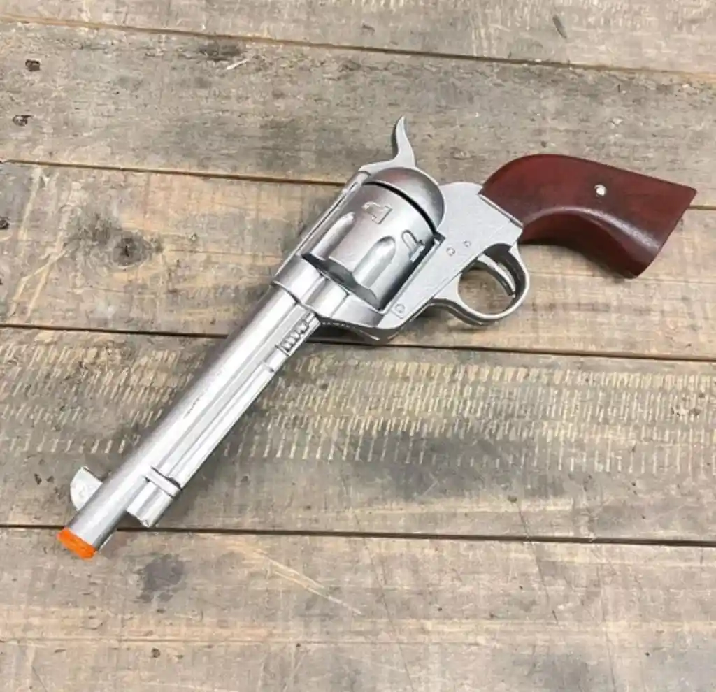 🔫 Pistola Revólver Juguete Super Cap Gun 💥 Descripción: Revive la emoción del viejo oeste con esta Pistola Revólver Juguete Super Cap Gun. Ideal para juegos, disfraces y cosplay, combina un diseño clásico con efectos sonoros realistas al usar caps (no incluidos). Fabricada en plástico resistente, es liviana, segura y perfecta para niños y adultos amantes de la diversión. 🤠🎉 Características: 🔫 Diseño realista: aspecto metálico tipo revólver clásico. 💥 Efecto de sonido: utiliza caps estándar (no incluidos) para generar un sonido fuerte y divertido. 🧩 Material duradero: plástico ABS resistente de alta calidad. 👪 Uso seguro: no dispara proyectiles; solo produce sonido. 🎭 Ideal para: disfraces, cosplay, juegos de vaqueros y sesiones fotográficas. 📦 Incluye: 1 pistola de juguete Super Cap Gun (sin caps). ⚠️ Recomendado: para mayores de 6 años bajo supervisión adulta.