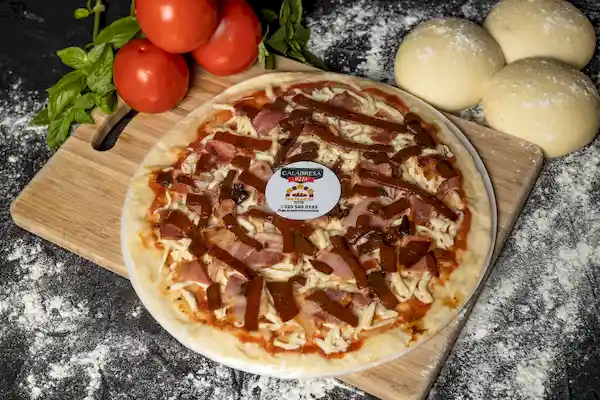 De 28 cm Con Masa Madurada; Salsa Pomodoro; Mozarella; Tocineta y Cebolla Caramelizada
