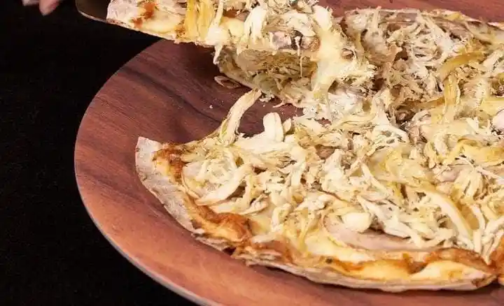 Mozzarella y pollo cocido. 8 porciones 25cm.