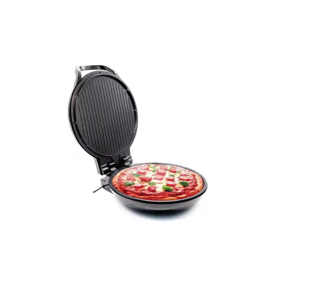 En nuestra Pizza Maker y Grill puedes realizar además de una deliciosa pizza casera de hasta 27 cm., otras preparaciones, ya que cuenta con 2 parrillas en un sólo producto, gracias a su apertura de 180º. La Pizza Maker y Grill, cuenta con dos planchas asadoras en una, con doble revestimiento antiadherente que permiten preparar más fácil y rápido tus comidas favoritas, sin necesidad de utilizar grasas adicionales, cocinas más saludable. La Pizza Maker y Grill, además cuenta con apertura de 180º lo que permite que tengas dos planchas en un sólo producto, con calentamiento independiente y plancha superior con acabado grill. Cuenta además con luces que indican el estado de preparación. Despreocúpate, no más alimentos quemados, cuenta con un sistema automático regulador de temperatura. Carcasa termo-resistente y manija fría al tacto. Además de pizzas caseras puedes realizar crepes, omelettes, arepas, asar pescado, pollo, carne; cocinas verduras. Muchas opciones en un sólo producto.