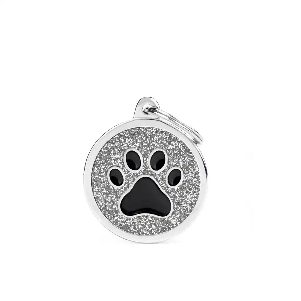 Placa Id My Family Círculo Grande Huella Gris Glitter