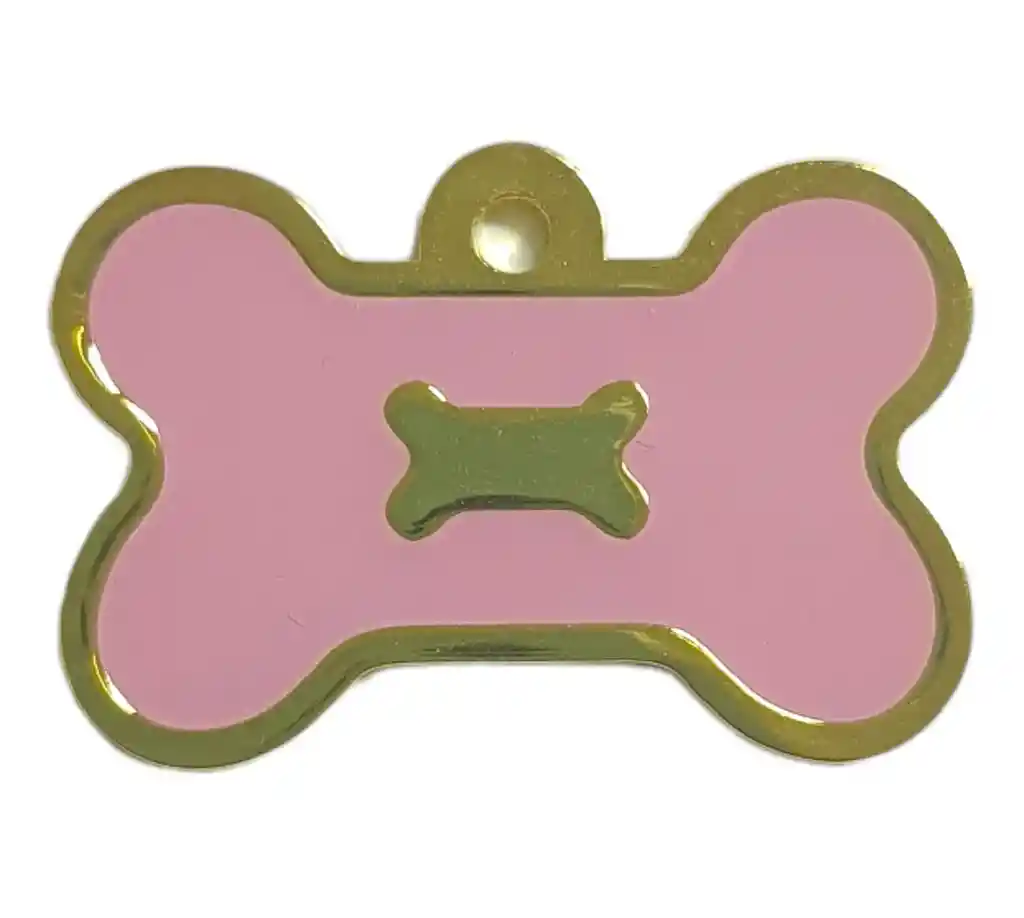 PLACA ROSA PALIDO BORDE DORADO HUESO CON HUESO MEDIANO