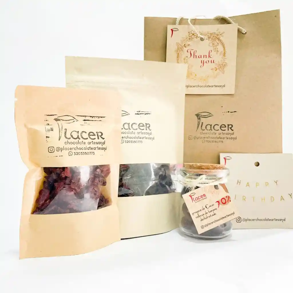 Snack Saludable, 1 Ciruelas Pasas 125Grs - 1 Frasco de Grageas (tu eliges el relleno entre Coco o Banano deshidratado) 60grs. - 1 Arándano 60Grs GRATIS: Bolsa Tipo Regalo Eco + Tarjeta de Thank You.