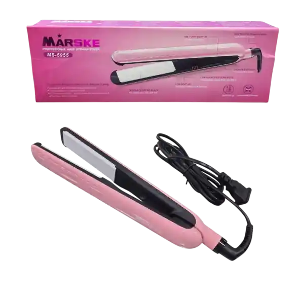 ¡Adiós al frizz y hola a un cabello liso, sedoso y brillante todos los días! La MARSKE MS-5955 es la plancha profesional que combina diseño moderno en color rosa con tecnología avanzada para un alisado perfecto sin dañar tu cabello. Características principales: Placas cerámicas de alta calidad → Deslizan suavemente, reducen el frizz y dejan el cabello suave y saludable. Pantalla LCD digital → Control preciso de temperatura de 140°C a 200°C. Calentamiento rápido → Listo para usar en solo 30 segundos. Cuerpo ligero y ergonómico → Fácil de manejar durante largas sesiones de peinado. Cable giratorio 360° → Mayor comodidad y evita enredos. Interruptor bloqueable → Protege las placas cuando no la usas. Tecnología PTC → Calentamiento uniforme y estable. Voltaje universal → Compatible con 110-240V (ideal para cualquier país). Beneficios: Reduce notablemente el encrespamiento. Ideal para todo tipo de cabello: fino, normal, grueso, teñido o con tratamiento. Puedes usarla para alisar completamente o crear ondas suaves y rizos con la técnica de plancha. Diseño premium en color rosa que se ve hermoso en tu tocador. ¡La plancha favorita de quienes buscan estilo profesional a un precio accesible! Incluye: Plancha MARSKE MS-5955 (color rosa) Cable de alimentación Caja original