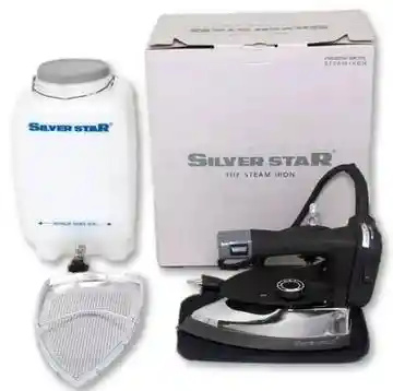Plancha Industrial Silver Star Vapor Es 300DescripciónRef: Es - 300Marca : Silver Star- Plancha industrial para todo tipo de ropa a trabajar- Ideal para Tintorerías. Sastrerías. Planchadurias. fábricas de ropa- Excelente en el hogar. Usted que tiene mucho vapor para dejar las prendas sin arrugas- Con tanque de agua que baja por gravedad.- El agua la calienta en la base de la plancha produciendo así el vapor.- Diseño refinado.- Peso 2.1 KG.- Base de aluminio anodizado.Electricidad : 110 VRepresentación : Manejamos toda la línea de repuestos para esta máquina.Incluye:- Base de Teflon- Tanque (3 Lts)- Base- Manguera (1 Mt)- Teflon Zapato