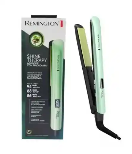 Plancha Alisadora Aguacate Remington Shine Therapy, Verde S9960 • Terapia para tu cabello • Resultado brillante y suave • Aguacate y macadamia • Medida de las placas: 2,54cm / 1" • Ajustes de Temperatura (+/-) • Temperatura máxima: 230°C (450°F) • Calentamiento en 30 segundos • Botón de Encendido y Apagado • Pantalla Digital • Placas Recubiertas de Cerámica infundida con aguacate y macadamia • Bloqueo de placas • Apagado Automático • Placas flotantes • Cable Giratorio de 2 metros • Garantía de 2 años • 94% más sedoso, 88% más suave, 88% más liso, 86% más brillante* • *vs alisador estándar de Remington