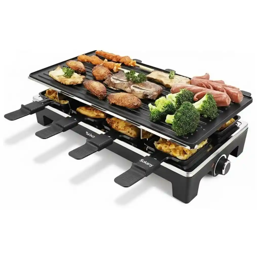 Plancha Parrilla Eléctrica Sokany – Experiencia Gourmet y Raclette 2 en 1 La Plancha Parrilla Eléctrica Sokany es la solución definitiva para quienes buscan transformar sus cenas en eventos interactivos y deliciosos. Equipada con una generosa placa antiadherente de 19 x 9 pulgadas, esta parrilla es ideal para fiestas y reuniones familiares, permitiendo cocinar una gran variedad de alimentos simultáneamente sobre la mesa. Gracias a su potente sistema de 1500 vatios y su control de temperatura ajustable, puedes derretir quesos sin esfuerzo en sus 8 sartenes individuales mientras asas carnes, mariscos o vegetales en la parte superior. Su diseño reversible con superficies plana y ranurada la convierte en una herramienta versátil no solo para cenas gourmet, sino también para preparar desayunos perfectos como panqueques y huevos. Características Principales Área de Cocción de Gran Tamaño: Placa antiadherente de 19 x 9 pulgadas, diseñada para alimentar a grupos grandes y familias. Potencia de 1500 Vatios: Calentamiento rápido y eficiente que cocina carnes y funde quesos en cuestión de minutos. Sistema de 8 Sartenes Individuales: Incluye mini sartenes para queso raclette, salsas o guarniciones, permitiendo que cada invitado personalice su plato. Superficie de Cocción Reversible: Lado ranurado para marcar carnes y eliminar grasa, y lado plano ideal para crepes, huevos y panqueques. Termostato Ajustable: Control de precisión que va desde mantener el calor hasta alcanzar los 450° F. Recubrimiento Antiadherente de Salud: Permite una cocción saludable sin necesidad de aceites o mantequillas adicionales. Especificaciones Técnicas Marca: Sokany. Potencia: 1500 W. Temperatura Máxima: 450° F. Material: Placa con revestimiento antiadherente de alta calidad. Componentes: 8 mini sartenes individuales incluidos. Limpieza: Placa superior apta para lavavajillas. Dimensiones Reales Superficie de la Placa: 48.2 cm x 22.8 cm (19 x 9 pulgadas). Peso: Diseñado para estabilidad y seguridad en el centro del comedor. Funciones Destacadas Versatilidad 2 en 1: Combina una parrilla de asado con una plancha para desayunos, ahorrando espacio y equipo en la cocina. Calor Uniforme: Distribución constante de la temperatura en toda la superficie para resultados consistentes. Limpieza Sin Esfuerzo: La tecnología antiadherente y el diseño desmontable aseguran que la limpieza posterior a la fiesta sea rápida. Indicadores Visibles: Luces de control que permiten saber exactamente cuándo la parrilla ha alcanzado la temperatura deseada. Contenido del Paquete 1 x Plancha Parrilla Eléctrica Sokany. 1 x Placa de cocción reversible (Ranurada/Plana). 8 x Mini sartenes para raclette. Manual de uso. Garantía Este producto cuenta con 30 días de garantía por defectos de fabricación. Política de Retracto Aplica el derecho de retracto dentro de los 5 días hábiles posteriores a la entrega. El producto debe devolverse sin señales de uso (limpio y sin residuos de comida), con todos sus sartenes y en su empaque original intacto. Notas Importantes Mantenimiento: No utilice utensilios metálicos sobre la superficie antiadherente para evitar rayones. Seguridad: Colocar siempre sobre una superficie plana y resistente al calor durante su funcionamiento. Evidencia: Para trámites de garantía o retracto, es indispensable presentar fotos o videos que demuestren el estado del equipo. La garantía no cubre daños por picos de voltaje, rayaduras accidentales por mal uso de cubiertos o fallas por sumergir la base eléctrica en agua.