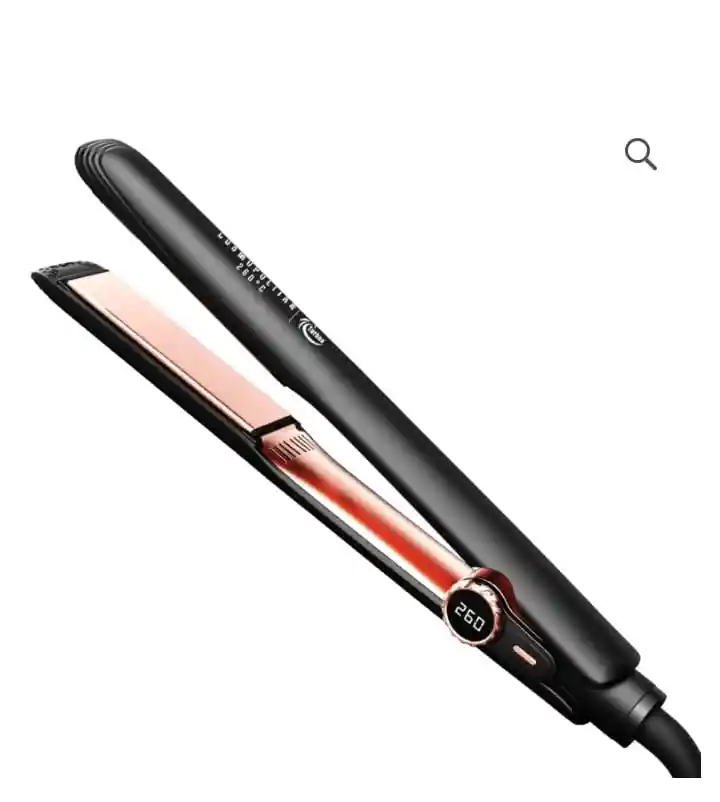 Plancha profesional. Patines flotantes con Nano Turmalina que reducen el frizz y aportan brillo al cabello. Temperatura ajustable, 6 niveles. Perilla de ajuste lateral rápida, recuperación de calor, cable giratorio profesional, bloqueo de seguridad diseñada específicamente para planchar queratinas y procesos de moldeado permanente en el cabello.