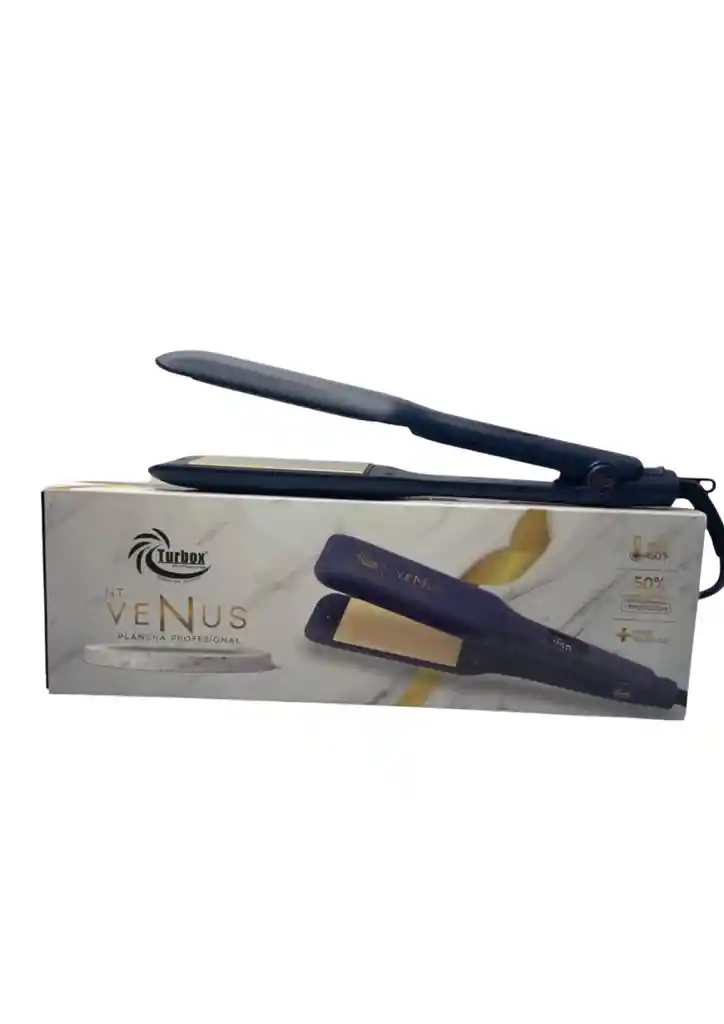 La Plancha Profesional NT-Venus de Turbox es una herramienta de alta gama diseñada para estilizados exigentes y tratamientos químicos (como keratinas o botox capilar), gracias a su avanzada tecnología de conducción térmica. Aquí tienes la ficha técnica detallada para tu catálogo: Especificaciones de las Placas Tecnología de Titanio Espejo: Las placas cuentan con un recubrimiento de titanio ultra liso que permite un deslizamiento sin fricción, evitando el quiebre de la fibra capilar. Ancho de Placa: Aproximadamente 1 pulgada (2.5 cm), el tamaño estándar ideal tanto para alisar desde la raíz como para crear ondas y rizos definidos. Distribución de Calor: Sistema de calentamiento MCH (Metal Ceramic Heater) que permite alcanzar la temperatura máxima en menos de 30 segundos y recuperarla instantáneamente tras cada pasada. Control de Temperatura y Energía Temperatura Máxima: Alcanza hasta 450°F (232°C), nivel profesional necesario para sellar procesos de alisado permanente. Pantalla Digital LCD: Permite un control preciso grado a grado, adaptándose a diferentes tipos de cabello (fino, normal o grueso). Voltaje Universal: Sistema de 110V - 220V (Dual Voltage), lo que la hace apta para viajes internacionales sin necesidad de transformadores. Diseño y Ergonomía Carcasa Resistente al Calor: Fabricada en polímeros de alta resistencia que mantienen el mango frío al tacto incluso tras horas de uso continuo. Cable Giratorio de 360°: Longitud profesional de 2.5 a 3 metros, diseñado para evitar enredos y facilitar el movimiento en el salón. Puntas Frías: Diseño ergonómico en los extremos para poder presionar con la otra mano durante el sellado sin riesgo de quemaduras. Beneficios Principales Sellado de Cutícula: La emisión de iones negativos naturales del titanio elimina el frizz y deja un brillo espejo en el cabello. Versatilidad 2 en 1: Gracias a su cuerpo redondeado, no solo sirve para alisar, sino que facilita la creación de ondas suaves y bucles. Durabilidad Profesional: Los componentes internos están diseñados para soportar jornadas de trabajo extensas en peluquerías. Recomendaciones de Uso y Mantenimiento Protección Térmica: Siempre aplicar un termoprotector antes de usar los 450°F para cuidar la salud del cabello. Limpieza de Placas: Una vez fría y desconectada, limpiar las placas con un paño de microfibra ligeramente húmedo para eliminar residuos de productos químicos que puedan manchar el titanio. Almacenamiento: No enrollar el cable alrededor de la plancha caliente para proteger la integridad del sistema eléctrico. Running Shopping, Somos especialistas en Belleza ; productos 100% Originales , garantizados y entregas rapidas !