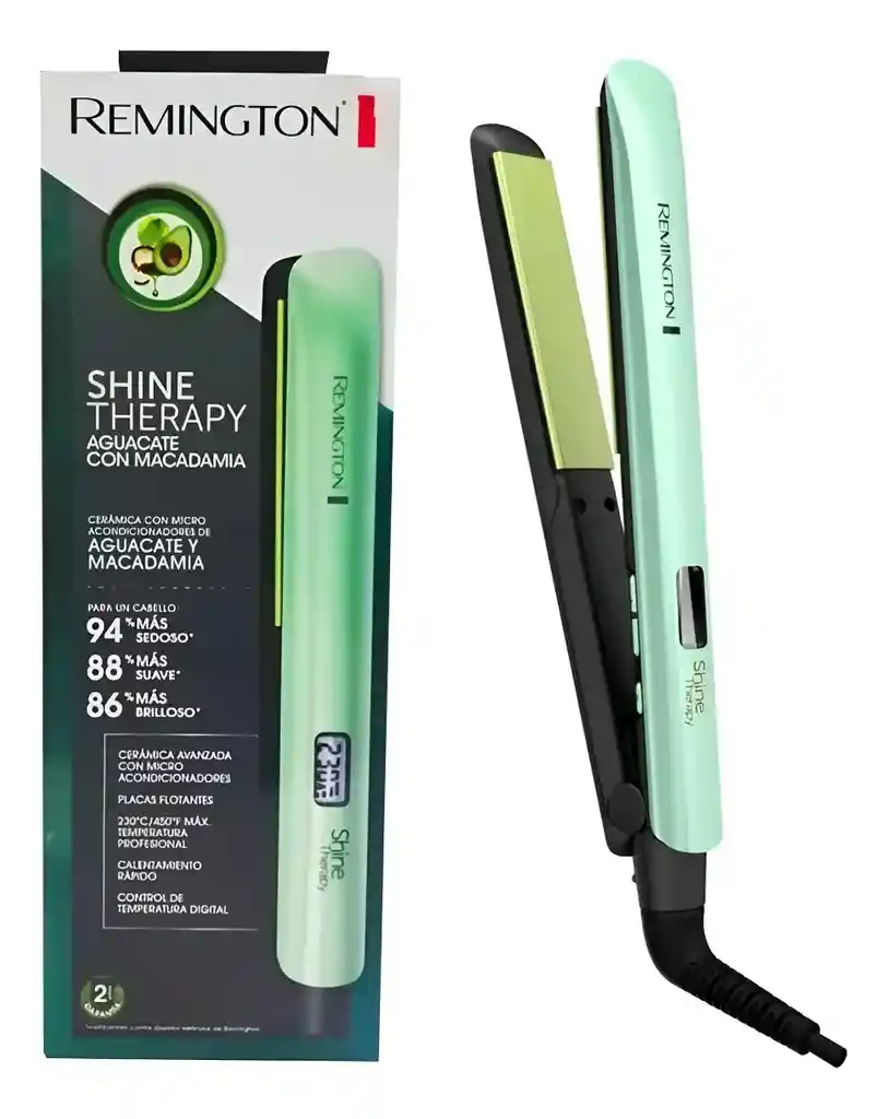 Plancha con macadamia y aguacate, temperatura digital de 450F o230C, diseño ergonomico especial para alisar y ondular tu cabello, rapido calentamiento en 45 segundos placas en ceramica y avanzada infunsion de aceite de aguacate y macadamia,cable giratorio 360 , tecnologia hidratante a base de vitaminas , pantalla LCD protege y da brillo gracias a su infusion de vitamina E.