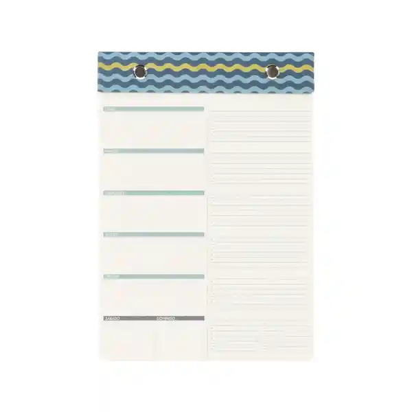 Un Práctico Block Planificador Para Que Organices tu Semana Anotando Todas Tus Actividades. Reuniones y Recordatorios. Cantidad de Páginas: 80 Hojas. Formato: A5. Gramaje: 100 g. Medidas: Largo: 20 cm. Ancho: 14 cm. Profundidad: 1.7 cm. Composición: 100% Papel Libre de Madera. 100 g. Cartón Texturado Aplicaciones de Metal. ''En Casaideas Encontrarás Artículos de Diseño. Para Vivir Día a Día en un Espacio Que te Haga Feliz.''.