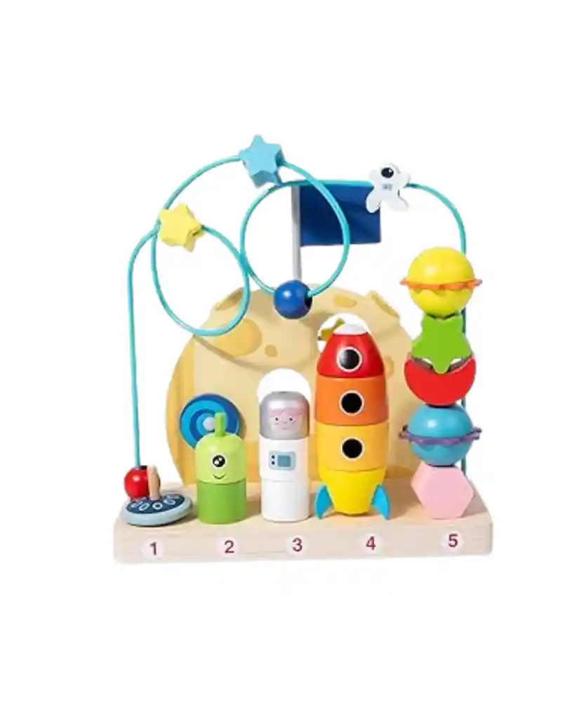 Despierta la imaginación y las habilidades motoras de los más pequeños con Planet Orbiting Beads, un colorido laberinto de cuentas con temática espacial diseñado para fomentar el aprendizaje activo y la exploración sensorial. Con cuentas en forma de planetas, estrellas y astronautas, este juguete invita al juego libre mientras fortalece la coordinación y el pensamiento lógico. Características destacadas: • Diseño de Aventura Espacial: Incluye cohete, astronauta y planetas que se deslizan por rieles metálicos curvos, estimulando la creatividad y el juego simbólico. • Inspirado en el Método Montessori: Favorece la autonomía, la resolución de problemas y la concentración mediante la manipulación táctil y la observación visual. • Desarrollo de Habilidades Motoras Finas: Mejora la destreza manual y la coordinación ojo-mano al mover las cuentas por sus trayectorias orbitales. • Materiales Seguros y Resistentes: Fabricado en madera y metal con acabados suaves y bordes redondeados, ideal para manos pequeñas. • Reconocimiento de Colores y Formas: Los tonos vivos y las figuras variadas estimulan el aprendizaje temprano y la discriminación visual. Edad recomendada: A partir de 18 meses Ideal para: Hogares, aulas Montessori y regalos educativos