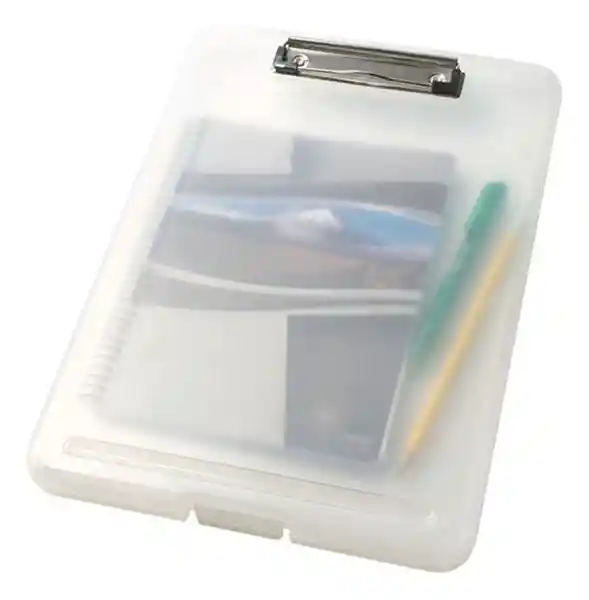 Portapapeles plástico con clip metálico, para hojas de tamaño carta. Transparente Alto: 35 cm Ancho 24 cm Material Plástico
