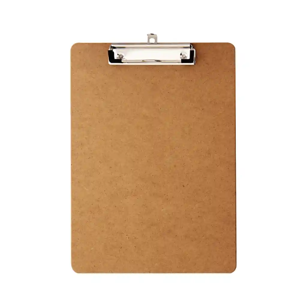 Planillero resistente de madera prensada con clip metálico. Ideal para notas, exámenes o presentaciones. Superficie lisa y estable.