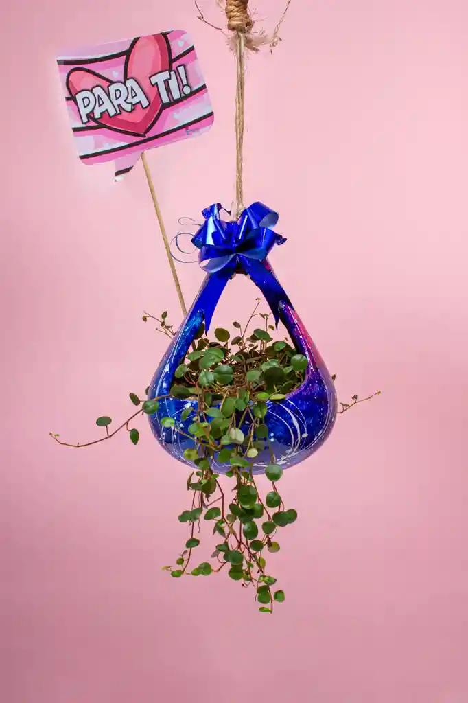 Agrega un toque de color y frescura a tu hogar con nuestra encantadora Planta Centavito en matera colgante nido. Con una mezcla de tonos morados y azules y salpicaduras blancas, esta pieza única combina un estilo moderno y artístico que cautiva a primera vista. Ideal para quienes buscan una decoración vibrante y relajante, esta matera colgante es perfecta para dar vida y elegancia a cualquier espacio, creando un ambiente lleno de armonía y belleza natural.