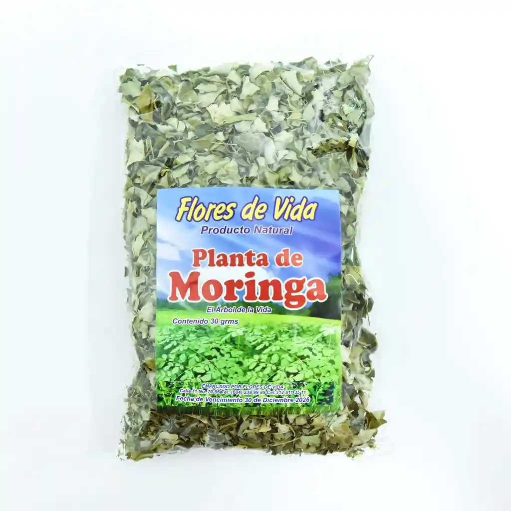 Planta de moringa, 30g, rica en nutrientes, ideal para infusiones, batidos o como suplemento en tus comidas.
