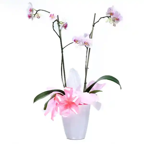 Hermosa Planta de Orquídeas Decorada Con Papel Seda Moño y Tarjeta