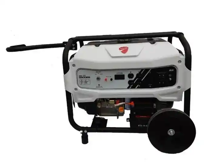 PLANTA ELECTRICA O GENERADOR DUCATI DGR 2500S MOTOR A GASOLINA DE 4 TIEMPOS DE 5,5 HP Plantas electricas o Generadores fabricados por DUCATI Facil movilidad por sus dimesiones y bajo peso. Características y ventajas Motor: 196 cc / 4 Tiempos. Voltaje: 110V / 220V. Frecuencia: 60 Hz. Potencia máxima: 2,5 kw. Potencia trabajo: 2,2 kw. Nivel de ruido: 72 db a 7 metros de distancia, bajo nivel de ruido. Peso: 42,5 kg. Autonomia de 4 hrs (100% carga). Tecnología Ducati da una corriente de alta calidad, para equipos que deben trabajar con poca fluctuaciones de voltaje. Alta confiabilidad. ENVIOS A TODO EL PAIS SOMOS IMPORTADORES DIRECTOS