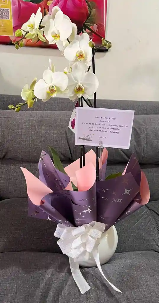 ¡Una joya natural para regalar o embellecer tu espacio! Esta hermosa orquídea, con sus delicadas flores y vibrantes colores, viene acompañada de una elegante maceta que resalta su belleza. Un símbolo de sofisticación, gracia y longevidad, perfecta para aquellos que aprecian la naturaleza y buscan un toque de frescura y elegancia en su hogar u oficina. Regala esta exquisita planta como un detalle lleno de armonía, ideal para cualquier ocasión especial.
