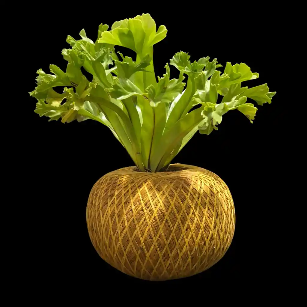 El Kokedama es una forma de bonsai que simboliza la conexión entre el cielo y la tierra, es una forma de expresar el equilibrio entre el ser humano y la naturaleza y el respeto por la vida. El helecho crispy es una planta muy apreciada por la belleza de sus hojas y su resistencia. Es una planta de interior, no le gusta el sol directo. Es perfecta para una mesa de centro.
