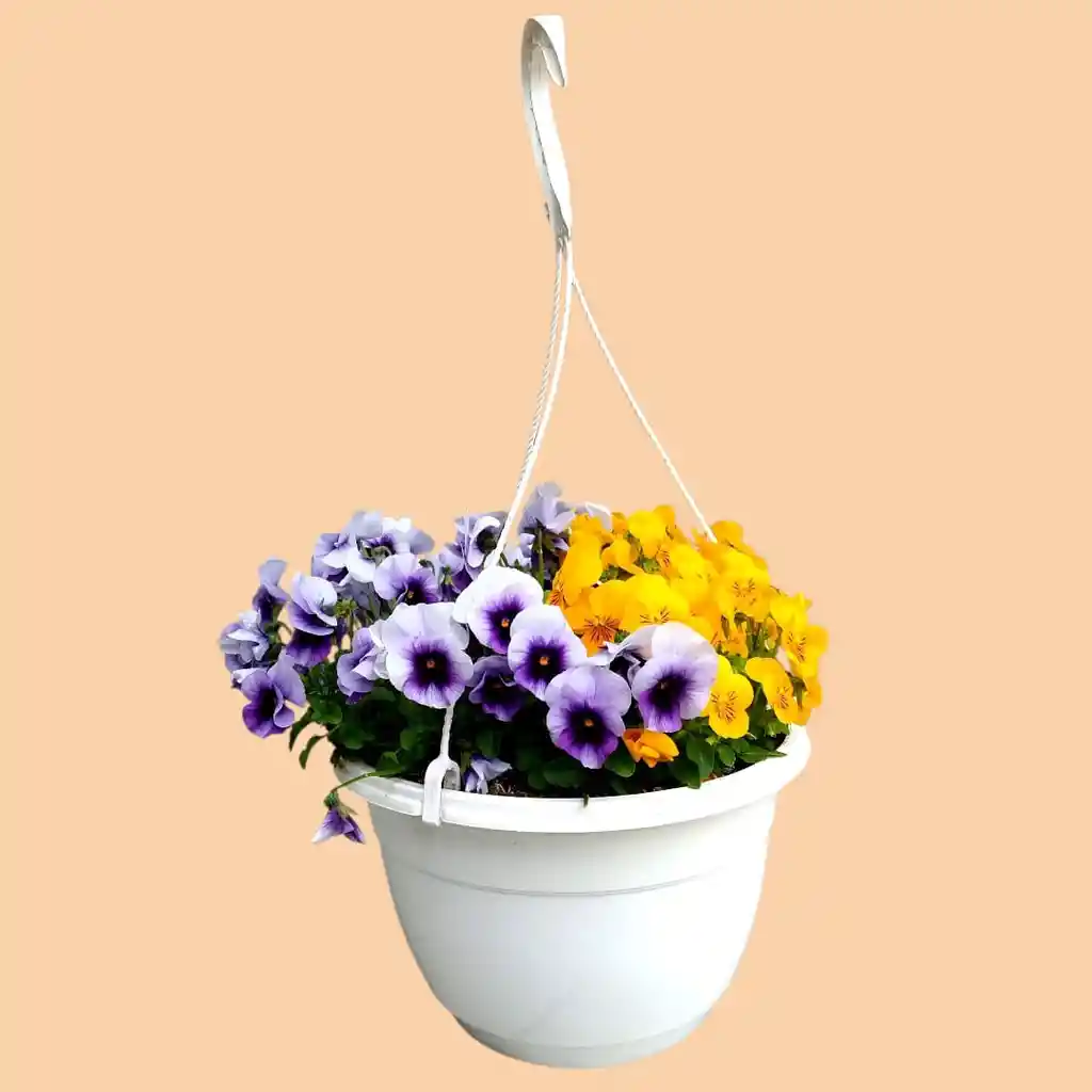 🌼💜 ¡Una explosión de color para alegrar cualquier rincón! 💜🌼 🌿 Hermosa canasta colgante de pensamientos 💛 Amarillos vibrantes y lilas intensos que enamoran 🏡 Perfecta para balcones, ventanas o terrazas ✨ Dale vida, frescura y estilo a tu hogar 🎁 Ideal para regalar o consentirte con algo lleno de naturaleza