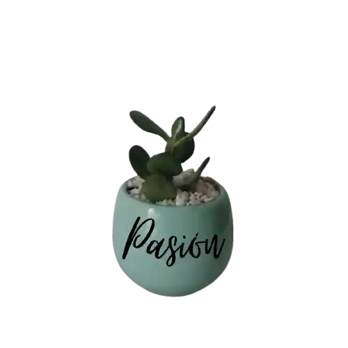 Planta suculenta variada en matera de cerámica redonda 5 cm Alto x 5 cm ancho aprox. Color a elección. Incluye bolsa de regalo.