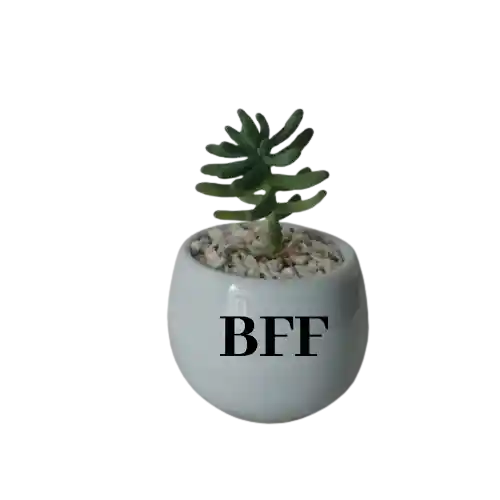 Planta suculenta variada en matera de cerámica redonda 5 cm Alto x 5 cm ancho aprox. Color a elección. Incluye bolsa de regalo.