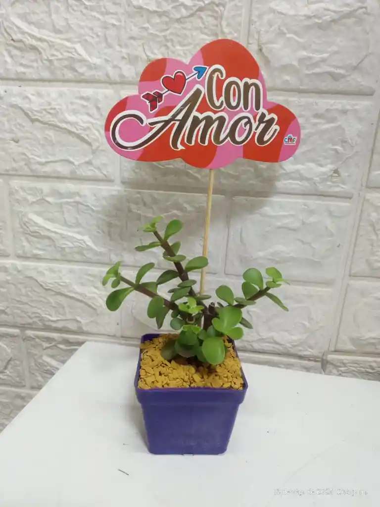 PLANTA SUCULENTA CON MENSAJE AMOR Y AMISTAD