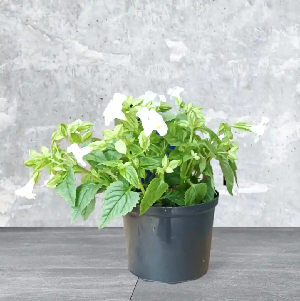 La torenia, también conocida como flor de wishbone o flor de la alondra, es una planta anual apreciada por sus vistosas flores y su fácil cultivo. Aunque es común encontrar en distintos colores como lo es el blanco. Sus flores pequeñas y coloridas crearan un espacio colorido y fresco perfecto para regalar o para decorar tu jardin.