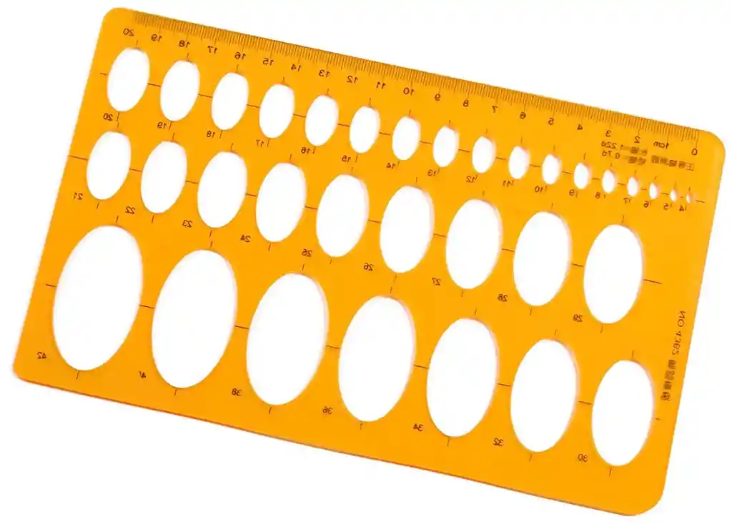 Características Principales Material y Diseño: Generalmente están fabricadas en plástico flexible o rígido, a menudo de color transparente (verde o humo) para permitir ver el dibujo debajo. Variedad de Medidas: Contienen múltiples perforaciones circulares de diferentes diámetros, habitualmente marcados en milímetros. Pueden incluir desde círculos muy pequeños (1 mm) hasta tamaños medianos (aproximadamente 35 mm). Marcas de Eje: Cada círculo suele tener cuatro pequeñas marcas o muescas que corresponden a los ejes verticales y horizontales (cuadrantes). Estas guías son fundamentales para alinear el círculo con precisión sobre el dibujo. Bordes Biselados: Muchos modelos cuentan con bordes internos inclinados para facilitar el uso con portaminas o estilógrafos, evitando que la tinta se corra.