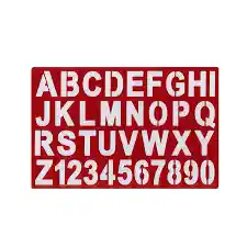 Plantilla de letras de gran tamaño, fabricada en material plástico resistente y transparente, ideal para rotulación, diseño y dibujo técnico. Permite trazar letras uniformes y precisas de forma rápida y ordenada, facilitando trabajos escolares, universitarios y profesionales.
