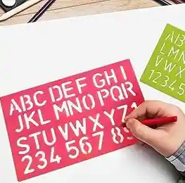 Características Principales Tipografía y Estilo: Presenta caracteres en fuentes estándar (como Arial o Helvética), en versiones de mayúsculas, minúsculas y números. Existen variantes en letra técnica, cursiva o decorativa. Tamaños Variados: Se clasifican según la altura de la letra en milímetros (por ejemplo, plantillas de 5 mm, 10 mm, 20 mm o hasta 100 mm para carteleras). Bordes de Precisión: Muchas cuentan con pequeños relieves en la parte inferior para que la tinta de los marcadores o micropuntas no se corra por capilaridad al trazar. Líneas de Alineación: Incluyen guías horizontales para asegurar que las letras queden perfectamente alineadas y con el espaciado correcto.