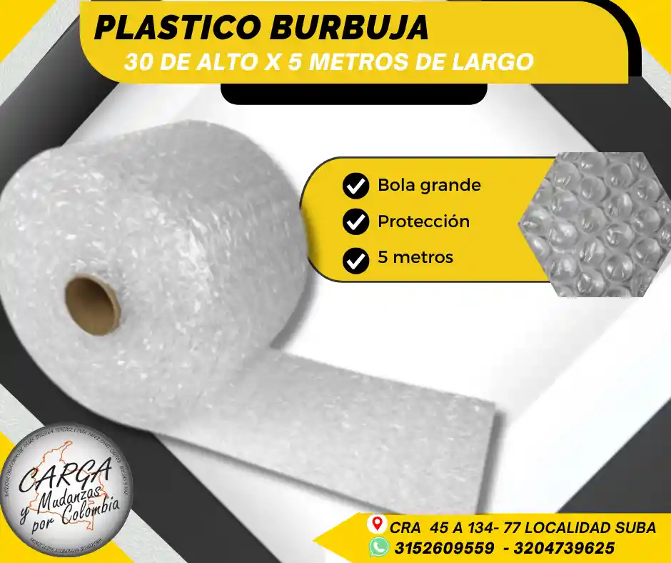 5 metros de plastico burbuja de 30 cm de alto bola grande